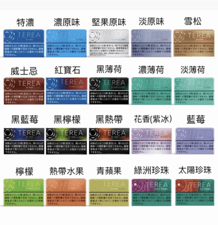 口味原味, 咖啡, 哈密瓜, 堅果, 抹茶, 橘子冰, 檸檬, 濃原味, 濃原味+, 莫吉托, 薄荷, 蓝莓, 話梅, 黑冰