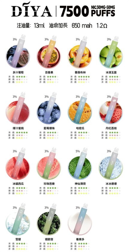 這款一次性電子煙精選多款不同風味,從清爽水果到經典煙草,滿足不同喜好。